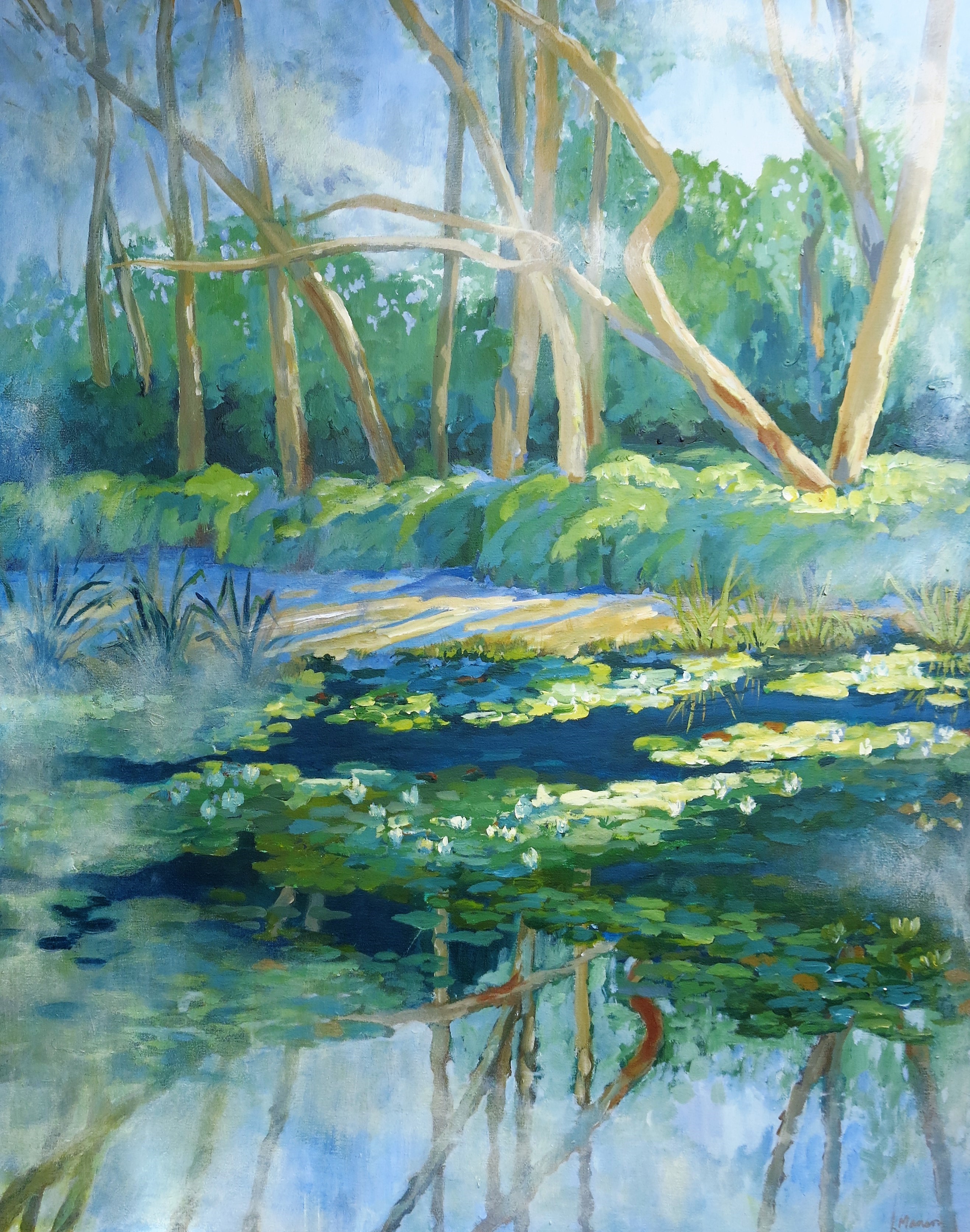 NORTON SIMON POND NORTON SIMON POND The magic of trees, water and plants touched with dabs of sunlight 24″ x 30″ Acrylic on Canvas Ready to Hang $1200 1 Comment